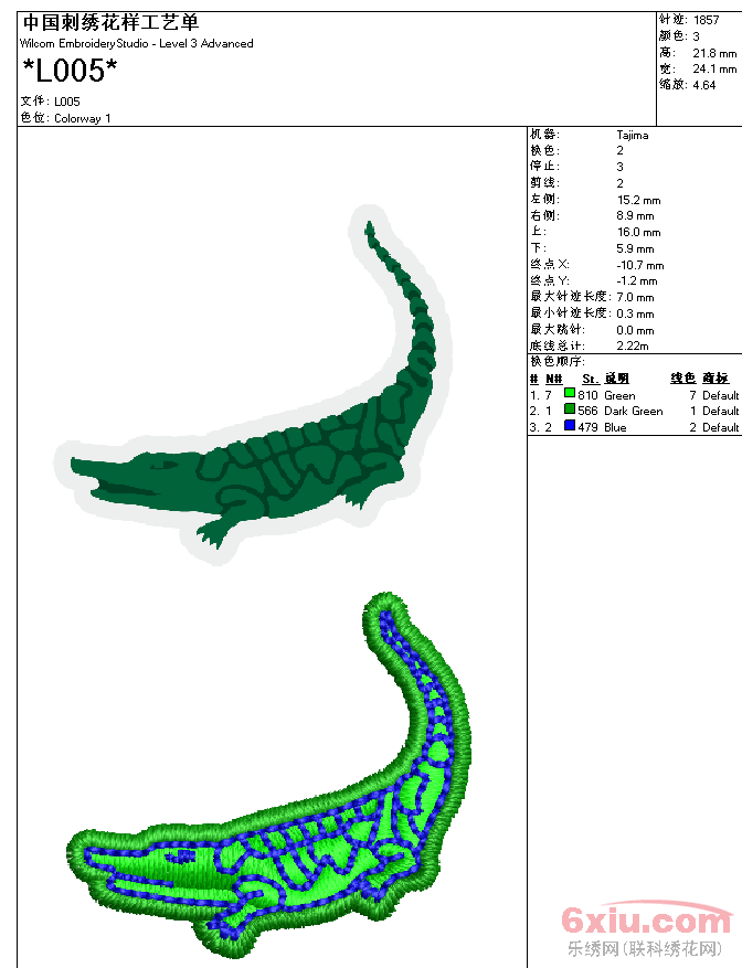 鳄鱼 点此上传花版兑乐绣币/现金 emb花版参数: 大小:71.00 KB / 尺寸:24*22[毫米] / 针数:1857针 / 线色:3 / 格式:emb / 版本:e2 版带文件需绣花软件方可打开,可配色打印导出各种格式或直接上机绣。如无绣花软件可下载1:1模拟效果图。 PNG图片信息:大小:0.0 (MB) /图宽*高:92x83(像素) 上传作者( 7025*** ) 获得乐绣币:5个 emb下载 1:1图下载 关闭 相似花型推荐: 马 汉服 兔子 老虎 风景 树 亭台楼阁 船 汉服 大袖杉狐狸 靓花 保罗 POLO 毛巾绣 墙布 山水情 背景墙 太极八卦 猫 西部牛仔猫 汉服 梅花 鸟 靓花 裙 汉服披肩 圆形 汉服大袖 鸟 汉服 鸟 上一个花样:渐变牙刷绣-手动针 下一个花样:马