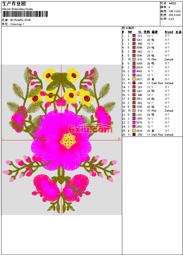 靓 花朵 点此上传花版兑乐绣币/现金 emb花版参数: 大小:251.50 KB / 尺寸:200*248[毫米] / 针数:44550针 / 线色:7 / 格式:emb / 版本:2006 版带文件需绣花软件方可打开,可配色打印导出各种格式或直接上机绣。如无绣花软件可下载1:1模拟效果图。 PNG图片信息:大小:0.9 (MB) /图宽*高:757x940(像素) 上传作者( w754*** ) 获得乐绣币:40个 emb下载 1:1图下载 关闭 相似花型推荐: 熊 虎头 熊 车标志 北京现代 鳄鱼 猫头 狗头 少数民族花边 只算三分一针数 十字绣 少数民族花边 只算三分一半针数 十字绣 少数民族服饰 十字绣 只算4分一针数 龙头 渐变毛巾绣 中空绣蝴蝶 龙 立体花朵 珠片蝴蝶 上一个花样:唐老鸭 下一个花样:熊
