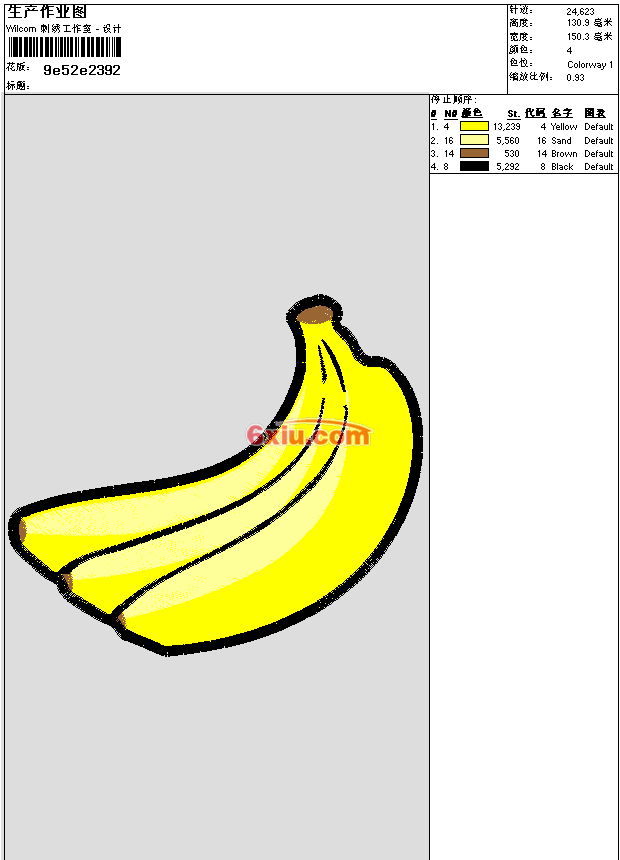 香蕉 (只算部分针数) 点此上传花版兑乐绣币/现金 emb花版参数: 大小:111.50 KB / 尺寸:150*131[毫米] / 针数:24623针 / 线色:4 / 格式:emb / 版本:e4.2 版带文件需绣花软件方可打开,可配色打印导出各种格式或直接上机绣。如无绣花软件可下载1:1模拟效果图。 PNG图片信息:大小:0.3 (MB) /图宽*高:569x496(像素) 上传作者( wuwu*** ) 获得乐绣币:10个 emb下载 1:1图下载 关闭 相似花型推荐: 兰草 花 鸟 喜鹊 鸟 喜上枝头 头像 印第安人 鸟 两只小鸟 戏曲服装 1尺2凤衣 凤凰 戏曲服装 道袍 1尺2八卦衣 太极 戏曲服装 龙 1尺1五色令旗订 欧式花型 兔子 汉服 莲花纹 民族风 荷花 熊猫国宝 奥特曼 上一个花样:卡通 小黄人 (只算部分针数) 下一个花样:兰草