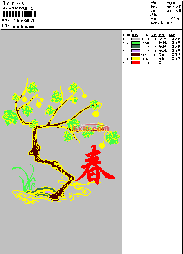 春 树 -春夏秋冬 精品 框画 点此上传花版兑乐绣币/现金 emb花版参数: 大小:538.50 KB / 尺寸:400*427[毫米] / 针数:73962针 / 线色:7 / 格式:emb / 版本:e4.2 版带文件需绣花软件方可打开,可配色打印导出各种格式或直接上机绣。如无绣花软件可下载1:1模拟效果图。 PNG图片信息:大小:1.6 (MB) /图宽*高:1513x1615(像素) 上传作者( wyq1*** ) 获得乐绣币:70个 emb下载 1:1图下载 关闭 相似花型推荐: 山洞 罗浮洞 精品 (只算部分针数) 泰山 精品 (只算部分针数) 欧美披肩(只算部分针数) 风火轮 西游记 哪吒 卡通 小黄人 (只算部分针数) 香蕉 (只算部分针数) 兰草 花 鸟 喜鹊 鸟 喜上枝头 头像 印第安人 鸟 两只小鸟 戏曲服装 1尺2凤衣 凤凰 戏曲服装 道袍 1尺2八卦衣 太极 上一个花样:夏 靓花 春夏秋冬 精品 框画 下一个花样:山洞 罗浮洞 精品 (只算部分针数)