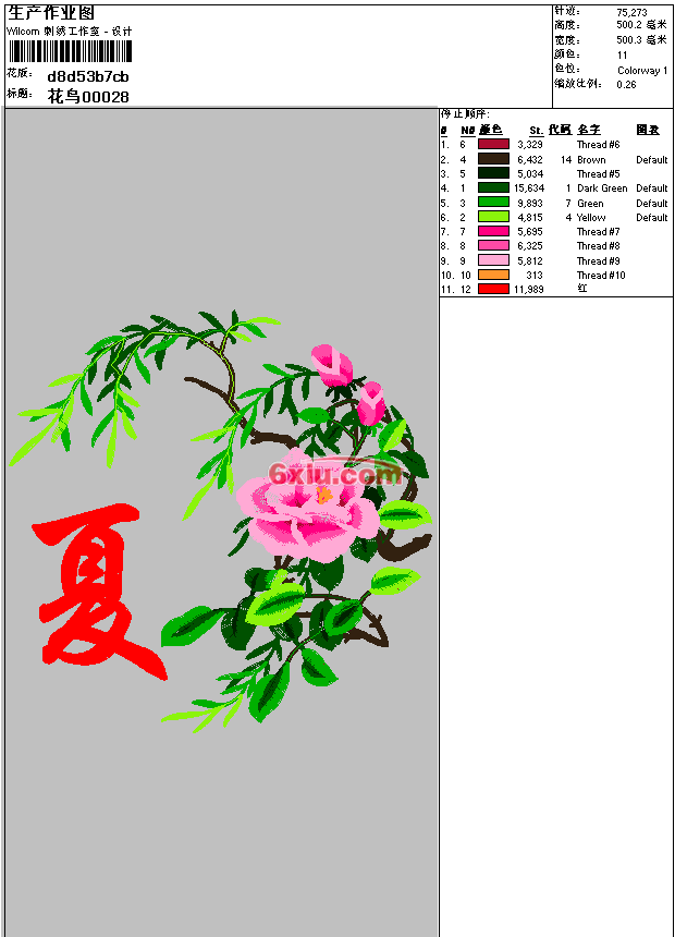 夏 靓花 春夏秋冬 精品 框画 点此上传花版兑乐绣币/现金 emb花版参数: 大小:959.00 KB / 尺寸:500*500[毫米] / 针数:75273针 / 线色:11 / 格式:emb / 版本:e4.2 版带文件需绣花软件方可打开,可配色打印导出各种格式或直接上机绣。如无绣花软件可下载1:1模拟效果图。 PNG图片信息:大小:2.8 (MB) /图宽*高:1893x1892(像素) 上传作者( wyq1*** ) 获得乐绣币:75个 emb下载 1:1图下载 关闭 相似花型推荐: 春 树 -春夏秋冬 精品 框画 山洞 罗浮洞 精品 (只算部分针数) 泰山 精品 (只算部分针数) 欧美披肩(只算部分针数) 风火轮 西游记 哪吒 卡通 小黄人 (只算部分针数) 香蕉 (只算部分针数) 兰草 花 鸟 喜鹊 鸟 喜上枝头 头像 印第安人 鸟 两只小鸟 戏曲服装 1尺2凤衣 凤凰 上一个花样:秋 海棠花 -春夏秋冬 精品 框画 下一个花样:春 树 -春夏秋冬 精品 框画