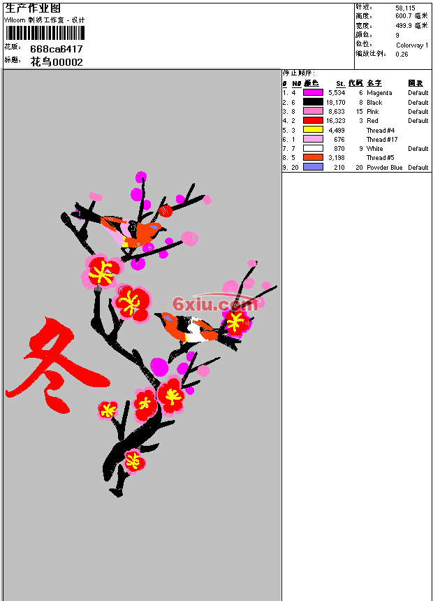 冬梅花鸟 -春夏秋冬 精品 框画 点此上传花版兑乐绣币/现金 emb花版参数: 大小:282.50 KB / 尺寸:500*601[毫米] / 针数:58115针 / 线色:9 / 格式:emb / 版本:e4.2 版带文件需绣花软件方可打开,可配色打印导出各种格式或直接上机绣。如无绣花软件可下载1:1模拟效果图。 PNG图片信息:大小:2.1 (MB) /图宽*高:1891x2272(像素) 上传作者( wyq1*** ) 获得乐绣币:60个 emb下载 1:1图下载 关闭 相似花型推荐: 秋 海棠花 -春夏秋冬 精品 框画 夏 靓花 春夏秋冬 精品 框画 春 树 -春夏秋冬 精品 框画 山洞 罗浮洞 精品 (只算部分针数) 泰山 精品 (只算部分针数) 欧美披肩(只算部分针数) 风火轮 西游记 哪吒 卡通 小黄人 (只算部分针数) 香蕉 (只算部分针数) 兰草 花 鸟 喜鹊 鸟 喜上枝头 头像 印第安人 上一个花样:汉服 袖子 下一个花样:秋 海棠花 -春夏秋冬 精品 框画