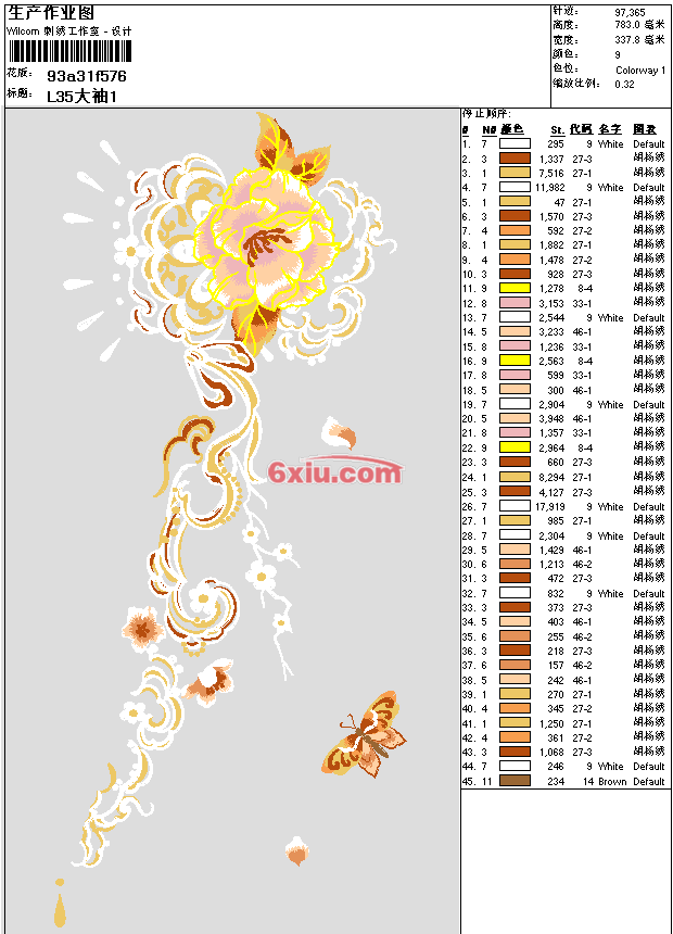 汉服 袖子 点此上传花版兑乐绣币/现金 emb花版参数: 大小:1.19 MB / 尺寸:338*783[毫米] / 针数:97376针 / 线色:9 / 格式:emb / 版本:e4.2 版带文件需绣花软件方可打开,可配色打印导出各种格式或直接上机绣。如无绣花软件可下载1:1模拟效果图。 PNG图片信息:大小:1.5 (MB) /图宽*高:1278x2962(像素) 上传作者( puzh*** ) 获得乐绣币:30个 emb下载 1:1图下载 关闭 相似花型推荐: 冬梅花鸟 -春夏秋冬 精品 框画 秋 海棠花 -春夏秋冬 精品 框画 夏 靓花 春夏秋冬 精品 框画 春 树 -春夏秋冬 精品 框画 山洞 罗浮洞 精品 (只算部分针数) 泰山 精品 (只算部分针数) 欧美披肩(只算部分针数) 风火轮 西游记 哪吒 卡通 小黄人 (只算部分针数) 香蕉 (只算部分针数) 兰草 花 鸟 喜鹊 鸟 喜上枝头 上一个花样:汉服 后背 下一个花样:冬梅花鸟 -春夏秋冬 精品 框画