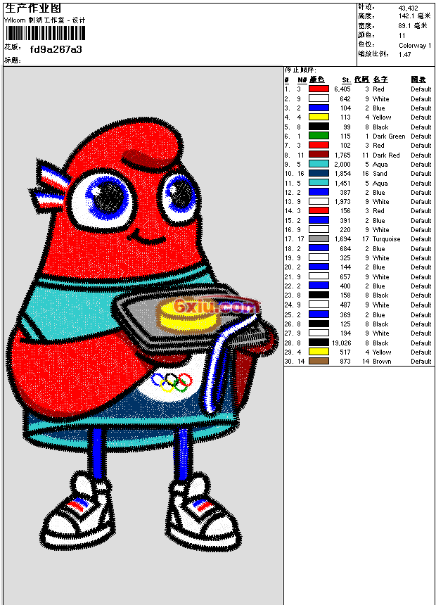 巴黎奥运会吉祥物 点此上传花版兑乐绣币/现金 emb花版参数: 大小:565.00 KB / 尺寸:89*142[毫米] / 针数:43432针 / 线色:11 / 格式:emb / 版本:e4.2 版带文件需绣花软件方可打开,可配色打印导出各种格式或直接上机绣。如无绣花软件可下载1:1模拟效果图。 PNG图片信息:大小:0.3 (MB) /图宽*高:338x538(像素) 上传作者( wuwu*** ) 获得乐绣币:20个 emb下载 1:1图下载 关闭 相似花型推荐: 巴黎奥运会吉祥物 章标 fight 抽像 民族特色衣片(只算部分针数) 虎 二只老虎 精品 框画 松 迎客松 精品框画 凤凰 包包 龙 蝴蝶 汉服 汉服 后背 汉服 袖子 冬梅花鸟 -春夏秋冬 精品 框画 秋 海棠花 -春夏秋冬 精品 框画 夏 靓花 春夏秋冬 精品 框画 春 树 -春夏秋冬 精品 框画 上一个花样:巴黎奥运会吉祥物 下一个花样:巴黎奥运会吉祥物