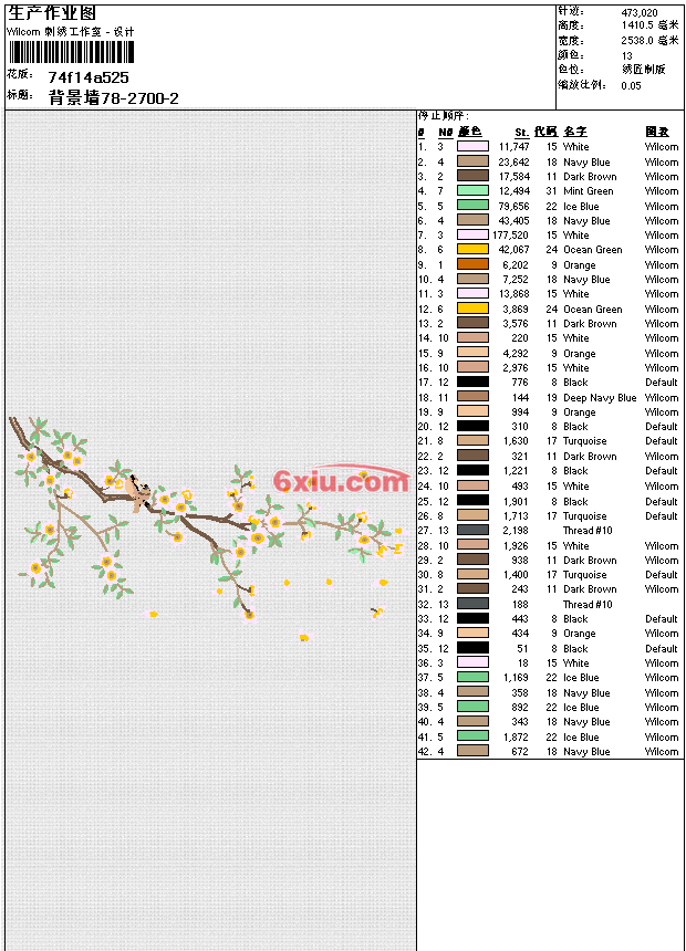 墙布 鸟语花香 电视背景墙 点此上传花版兑乐绣币/现金 emb花版参数: 大小:2.20 MB / 尺寸:2538*1410[毫米] / 针数:473085针 / 线色:13 / 格式:emb / 版本:e2 版带文件需绣花软件方可打开,可配色打印导出各种格式或直接上机绣。如无绣花软件可下载1:1模拟效果图。 PNG图片信息:大小:19.9 (MB) /图宽*高:9592x5330(像素) 上传作者( 刻苦*** ) 获得乐绣币:450个 emb下载 1:1图下载 关闭 相似花型推荐: 墙布 鸟语花香 电视背景墙 巴黎奥运会吉祥物 巴黎奥运会吉祥物 巴黎奥运会吉祥物 章标 fight 抽像 民族特色衣片(只算部分针数) 虎 二只老虎 精品 框画 松 迎客松 精品框画 凤凰 包包 龙 蝴蝶 汉服 汉服 后背 汉服 袖子 冬梅花鸟 -春夏秋冬 精品 框画 上一个花样:窗帘(只算部分针数) 下一个花样:墙布 鸟语花香 电视背景墙