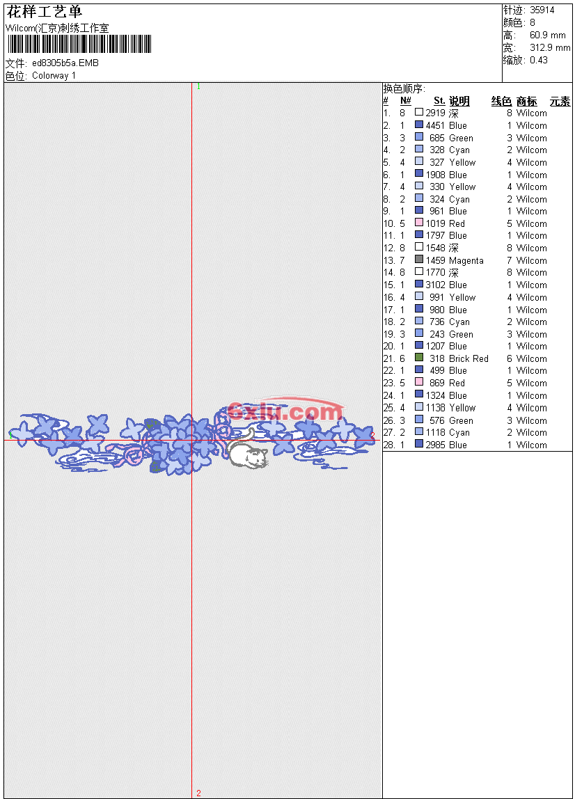 栀子花猫咪 点此上传花版兑乐绣币/现金 emb花版参数: 大小:616.00 KB / 尺寸:313*61[毫米] / 针数:35914针 / 线色:8 / 格式:emb / 版本:e4.2 版带文件需绣花软件方可打开,可配色打印导出各种格式或直接上机绣。如无绣花软件可下载1:1模拟效果图。 PNG图片信息:大小:0.3 (MB) /图宽*高:1184x231(像素) 上传作者( ZJQ8*** ) 获得乐绣币:30个 emb下载 1:1图下载 关闭 相似花型推荐: 柠檬 3色亮片 dhp大豪 荷花8色亮片 大豪 dhp 彩马 宝莉 4色亮片 大豪 dhp 猫头 猫头 狗头 狗头 哈士奇 十字绣 针法 非手动针 可调 本田 logo honda 狗插针 柴犬 猫 巧克力猫猫 竹 精品服装 古风 汉服 阿拉伯头巾可直接上机(只算部分针数) 阿拉伯头巾可直接上机 (只算部分针数) 孔雀 上一个花样:山水竹亭 汉服 下一个花样:柠檬 3色亮片 dhp大豪