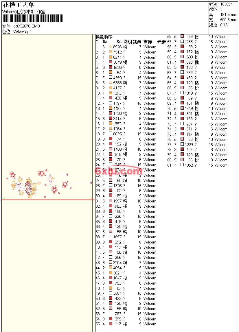 金鱼 点此上传花版兑乐绣币/现金 emb花版参数: 大小:618.50 KB / 尺寸:500*191[毫米] / 针数:103894针 / 线色:7 / 格式:emb / 版本:e4.2 版带文件需绣花软件方可打开,可配色打印导出各种格式或直接上机绣。如无绣花软件可下载1:1模拟效果图。 PNG图片信息:大小:0.8 (MB) /图宽*高:1893x725(像素) 上传作者( ZJQ8*** ) 获得乐绣币:100个 emb下载 1:1图下载 关闭 相似花型推荐: 金鱼 汉服 竹子 竹子 竹亭 风景 汉服 山水竹亭 汉服 栀子花猫咪 柠檬 3色亮片 dhp大豪 荷花8色亮片 大豪 dhp 彩马 宝莉 4色亮片 大豪 dhp 猫头 猫头 狗头 狗头 哈士奇 十字绣 针法 非手动针 可调 本田 logo honda 上一个花样:凤凰兰花 汉服 下一个花样:金鱼 汉服