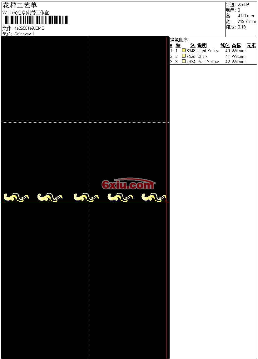 汉服 菊花系列 带 点此上传花版兑乐绣币/现金 emb花版参数: 大小:169.00 KB / 尺寸:720*41[毫米] / 针数:23509针 / 线色:3 / 格式:emb / 版本:e4.2 版带文件需绣花软件方可打开,可配色打印导出各种格式或直接上机绣。如无绣花软件可下载1:1模拟效果图。 PNG图片信息:大小:0.3 (MB) /图宽*高:2723x156(像素) 上传作者( ZJQ8*** ) 获得乐绣币:10个 emb下载 1:1图下载 关闭 相似花型推荐: 汉服 兰花 兰花 兰花 凤凰兰花 汉服 金鱼 金鱼 汉服 竹子 竹子 竹亭 风景 汉服 山水竹亭 汉服 栀子花猫咪 柠檬 3色亮片 dhp大豪 荷花8色亮片 大豪 dhp 彩马 宝莉 4色亮片 大豪 dhp 猫头 上一个花样:汉服 菊花 下一个花样:汉服 兰花