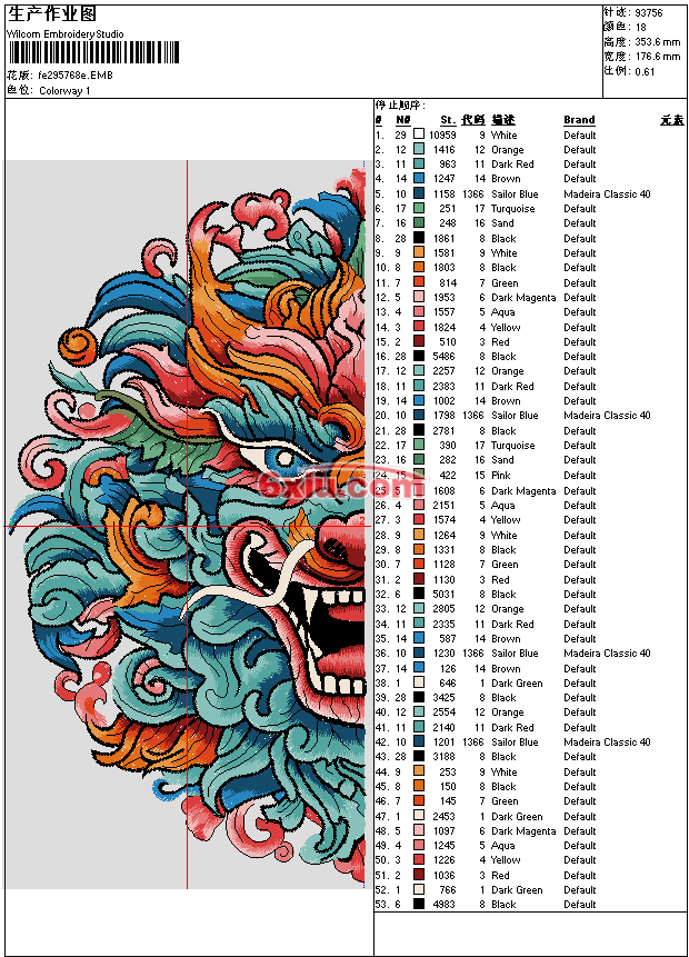 龙头 只有一半 另一半完全对称 可自行复制 点此上传花版兑乐绣币/现金 emb花版参数: 大小:2.20 MB / 尺寸:232*638[毫米] / 针数:95803针 / 线色:19 / 格式:emb / 版本:e4.2 版带文件需绣花软件方可打开,可配色打印导出各种格式或直接上机绣。如无绣花软件可下载1:1模拟效果图。 PNG图片信息:大小:1.7 (MB) /图宽*高:878x2412(像素) 上传作者( 岁月*** ) 获得乐绣币:100个 emb下载 1:1图下载 关闭 相似花型推荐: 汉服衣服,龙虾 汉服衣服,螃蟹 汉服,衣服竹叶 汉服衣服 鹤 汉服凤凰裙摆 十字绣孔雀 手动针 汉服 菊花 汉服 菊花 汉服 蝴蝶 汉服 菊花 汉服 菊花 汉服 菊花 汉服 菊花系列 带 汉服 兰花 兰花 上一个花样:yes 立体水洗绣花 下一个花样:汉服衣服,龙虾