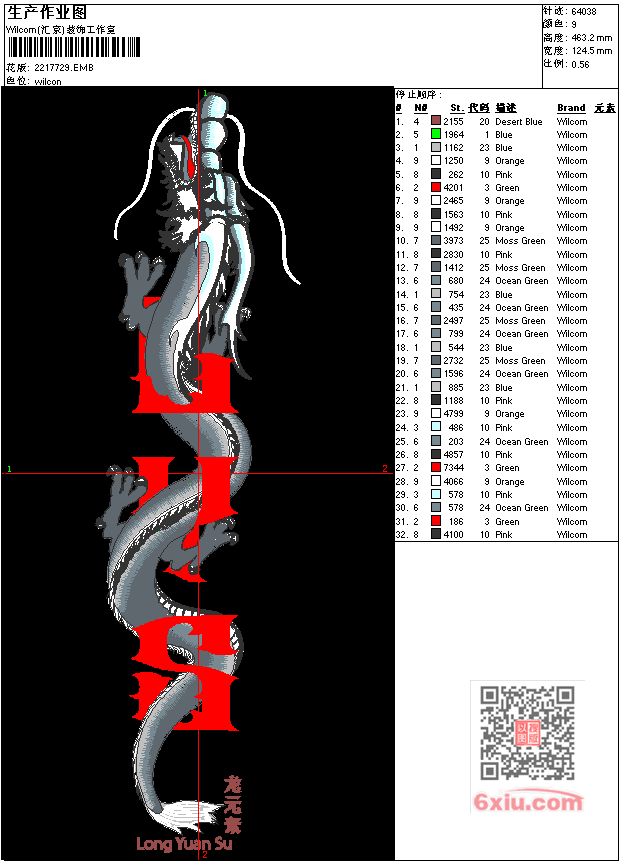 龙元素 点此上传花版兑乐绣币/现金 emb花版参数: 大小:370.00 KB / 尺寸:125*463[毫米] / 针数:64038针 / 线色:9 / 格式:emb / 版本:e4.2 版带文件需绣花软件方可打开,可配色打印导出各种格式或直接上机绣。如无绣花软件可下载1:1模拟效果图。 PNG图片信息:大小:0.8(MB) /图宽*高:471x1753(像素) 上传作者( 4742*** ) 获得乐绣币:50个 emb下载 1:1图下载 关闭 相似花型推荐: 花朵装饰字母 dior 古风鸟 中国风 旗袍 羊在花丛中笑 贴布 长耳兔子 插针 鸟 花 牙刷绣 字母- doublejd 福特 龙凤图 tiger 虎头 孔雀 白玉兰 背景墙 鸟语 梅花 牛头 骷髅 仙人掌 拱桥 polo 男装T恤 荷花凤凰鸟 汉服 莲花麋鹿 汉服 仙鹤 上一个花样:圆标 另一半自行复制 下一个花样:花朵装饰字母 dior
