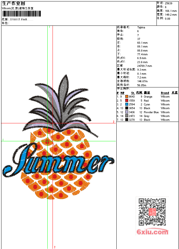 大菠萝 点此上传花版兑乐绣币/现金 EMB花版参数: 大小:183.00 KB / 尺寸:149*166[毫米] / 针数:25639针 / 线色:6 / 格式:EMB / 版本:e4.2 版带文件需绣花软件方可打开,可配色打印导出各种格式或直接上机绣。如无绣花软件可下载1:1模拟效果图。 PNG图片信息:大小:0.4(MB) /图宽*高:565x629(像素) 上传作者( dljm*** ) 获得乐绣币:25个 EMB下载 1:1图下载 关闭 相似花型推荐: 拉布布 家纺-孔雀-抱枕 家纺- 枕头-大象 大象,抱枕 凤凰 插针-靓花 赤兔马 凤凰 靓花 靓花 鹿 山水背景墙 牡丹花背景墙 筇竹 橘猫 插针 上一个花样:民族服饰花大 下一个花样:拉布布