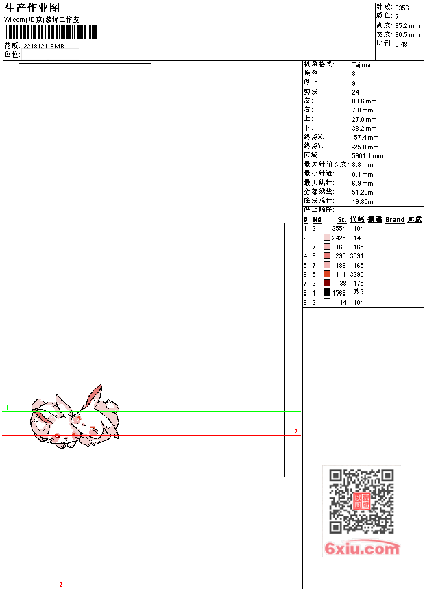 兔子 点此上传花版兑乐绣币/现金 EMB花版参数: 大小:2.50 MB / 尺寸:91*65[毫米] / 针数:8356针 / 线色:7 / 格式:EMB / 版本:e4.2 版带文件需绣花软件方可打开,可配色打印导出各种格式或直接上机绣。如无绣花软件可下载1:1模拟效果图。 PNG图片信息:大小:0.1(MB) /图宽*高:343x247(像素) 上传作者( magi*** ) 获得乐绣币:5个 EMB下载 1:1图下载 关闭 相似花型推荐: 后背刺绣大花 主题 民族服饰花大 大菠萝 拉布布 家纺-孔雀-抱枕 家纺- 枕头-大象 大象,抱枕 凤凰 插针-靓花 赤兔马 凤凰 靓花 靓花 鹿 山水背景墙 上一个花样:靓花 下一个花样:后背刺绣大花 主题