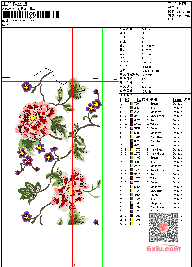 靓花 匹绣 点此上传花版兑乐绣币/现金 EMB花版参数: 大小:565.00 KB / 尺寸:418*739[毫米] / 针数:110858针 / 线色:9 / 格式:EMB / 版本:e4.2 版带文件需绣花软件方可打开,可配色打印导出各种格式或直接上机绣。如无绣花软件可下载1:1模拟效果图。 PNG图片信息:大小:4.3(MB) /图宽*高:1583x2794(像素) 上传作者( 1875*** ) 获得乐绣币:100个 EMB下载 1:1图下载 关闭 相似花型推荐: 靓花,经典花 欧花 背景墙,皮雕,柳树,印加绣,靓花 背景墙,皮雕,独绣,彩绣,玉兰花 背景墙,皮雕,经典花,靓花,二枝花 背景墙,皮雕,孔雀翎 背景墙,皮雕,经典花,小鸟 兔子 兔子 靓花 兔子 后背刺绣大花 主题 民族服饰花大 大菠萝 拉布布 家纺-孔雀-抱枕 上一个花样:靓花 欧花 下一个花样:靓花,经典花 欧花