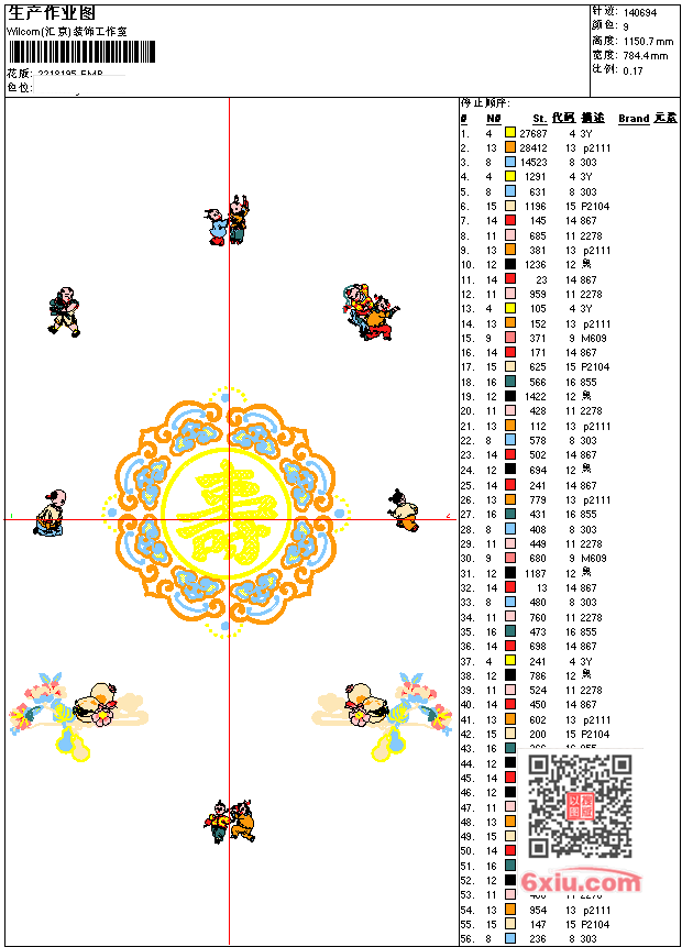 寿被 点此上传花版兑乐绣币/现金 EMB花版参数: 大小:920.00 KB / 尺寸:784*1151[毫米] / 针数:140694针 / 线色:9 / 格式:EMB / 版本:e4.2 版带文件需绣花软件方可打开,可配色打印导出各种格式或直接上机绣。如无绣花软件可下载1:1模拟效果图。 PNG图片信息:大小:3.8(MB) /图宽*高:2967x4353(像素) 上传作者( 艺朵*** ) 获得乐绣币:140个 EMB下载 1:1图下载 关闭 相似花型推荐: 荷花 靓花 兔 靓花 熊 铜钱 汉服 兔子 蟠桃 鲤鱼 龙 吉祥 鹤 马褂 马甲 石榴 兔子 靓花 小花 兔子 荷花 花瓶 塔 尾巴 上一个花样:工艺图-女孩 下一个花样:荷花