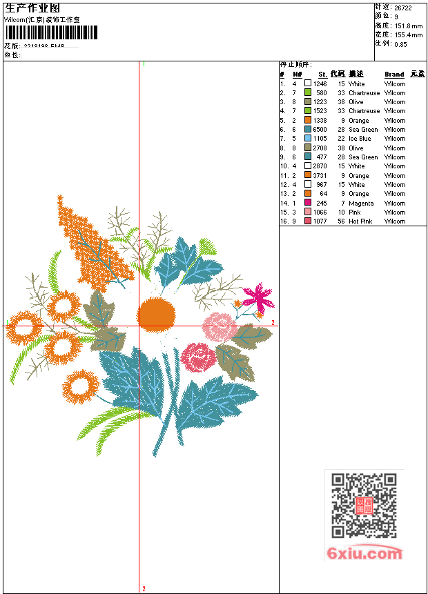工艺图-花朵 点此上传花版兑乐绣币/现金 EMB花版参数: 大小:390.00 KB / 尺寸:155*152[毫米] / 针数:26722针 / 线色:9 / 格式:EMB / 版本:e4.2 版带文件需绣花软件方可打开,可配色打印导出各种格式或直接上机绣。如无绣花软件可下载1:1模拟效果图。 PNG图片信息:大小:0.4(MB) /图宽*高:588x575(像素) 上传作者( jnd3*** ) 获得乐绣币:10个 EMB下载 1:1图下载 关闭 相似花型推荐: 工艺图-女孩 工艺图-女孩 寿被 荷花 靓花 兔 靓花 熊 铜钱 汉服 兔子 蟠桃 鲤鱼 龙 吉祥 鹤 马褂 马甲 石榴 兔子 靓花 小花 上一个花样:工艺图-花朵 下一个花样:工艺图-女孩