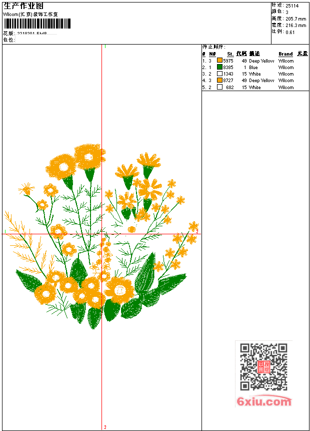 工艺图-花朵 点此上传花版兑乐绣币/现金 EMB花版参数: 大小:521.00 KB / 尺寸:216*206[毫米] / 针数:25114针 / 线色:3 / 格式:EMB / 版本:e4.2 版带文件需绣花软件方可打开,可配色打印导出各种格式或直接上机绣。如无绣花软件可下载1:1模拟效果图。 PNG图片信息:大小:0.5(MB) /图宽*高:819x779(像素) 上传作者( jnd3*** ) 获得乐绣币:25个 EMB下载 1:1图下载 关闭 相似花型推荐: 工艺图-小女孩 拾穗 工艺图-花朵 工艺图-花朵 工艺图-女孩 工艺图-女孩 寿被 荷花 靓花 兔 靓花 熊 铜钱 汉服 兔子 蟠桃 鲤鱼 龙 吉祥 鹤 马褂 马甲 上一个花样:工艺图-松鼠 松果 下一个花样:工艺图-小女孩 拾穗