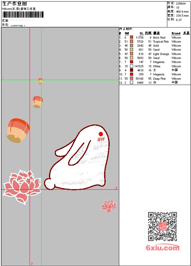 玉兔报喜 点此上传花版兑乐绣币/现金 EMB花版参数: 大小:1.08 MB / 尺寸:340*401[毫米] / 针数:235604针 / 线色:10 / 格式:EMB / 版本:e4.2 版带文件需绣花软件方可打开,可配色打印导出各种格式或直接上机绣。如无绣花软件可下载1:1模拟效果图。 PNG图片信息:大小:1.2(MB) /图宽*高:1285x1517(像素) 上传作者( ZJQ8*** ) 获得乐绣币:230个 EMB下载 1:1图下载 关闭 相似花型推荐: 梅花鹿背景墙 光遇巫师 卡通 瑞吉尔 卡通 蝴蝶 花 鸟 燕子 靓花 假山 松鼠 龙福 凤凰 小花 工艺图-松鼠 松果 工艺图-花朵 工艺图-小女孩 拾穗 工艺图-花朵 工艺图-花朵 上一个花样:玉兔报喜 下一个花样:梅花鹿背景墙