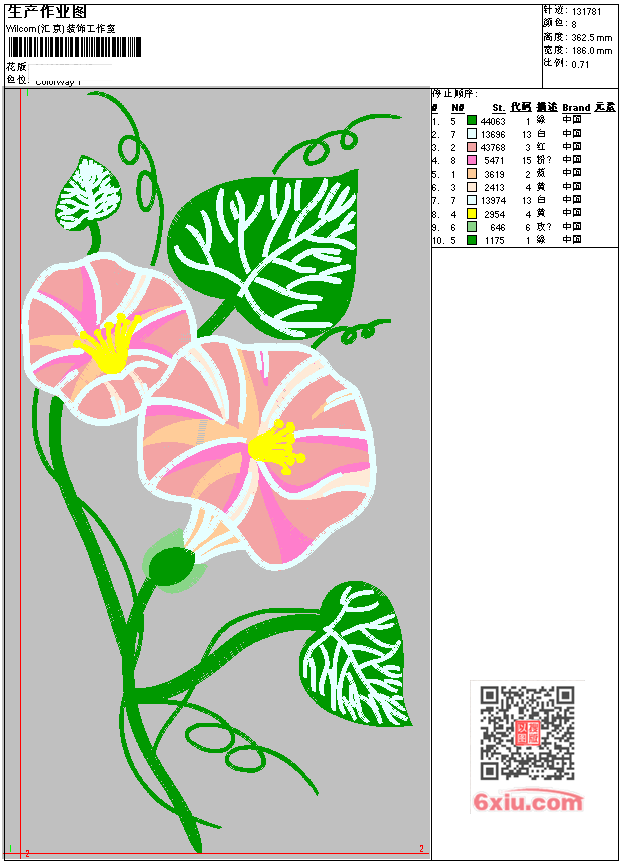喇叭花 点此上传花版兑乐绣币/现金 EMB花版参数: 大小:361.00 KB / 尺寸:186*363[毫米] / 针数:131781针 / 线色:8 / 格式:EMB / 版本:e4.2 版带文件需绣花软件方可打开,可配色打印导出各种格式或直接上机绣。如无绣花软件可下载1:1模拟效果图。 PNG图片信息:大小:0.9(MB) /图宽*高:704x1372(像素) 上传作者( ZJQ8*** ) 获得乐绣币:1个 EMB下载 1:1图下载 关闭 相似花型推荐: 喇叭花 喇叭花 蝴蝶喇叭花 栀子花团纹 栀子花飘带 栀子花 玉兔报喜 玉兔报喜 玉兔报喜 梅花鹿背景墙 光遇巫师 卡通 瑞吉尔 卡通 蝴蝶 花 鸟 燕子 靓花 假山 上一个花样:喇叭花 下一个花样:喇叭花