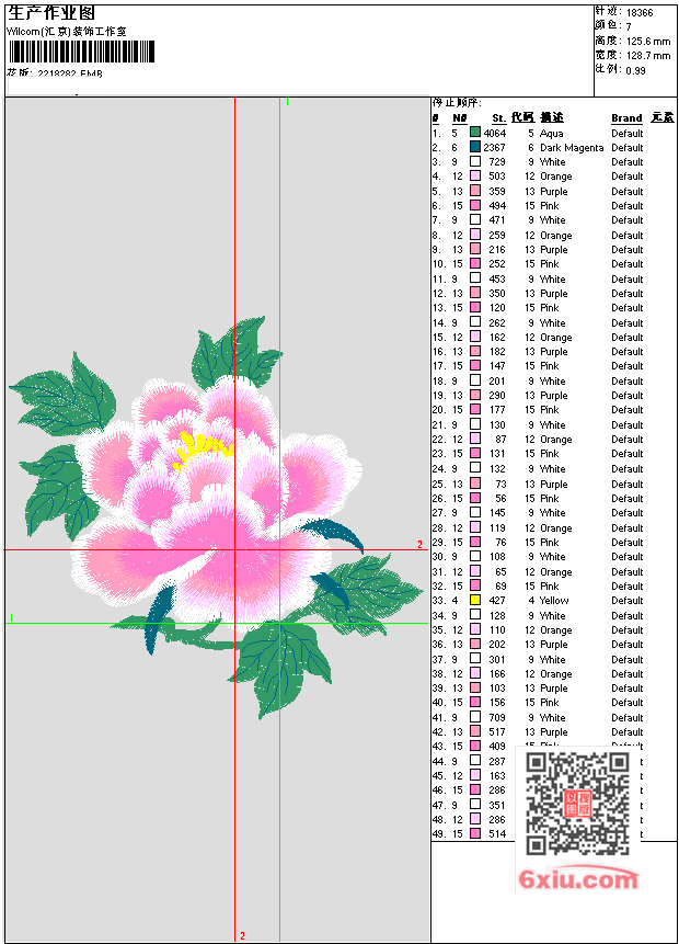 牡丹花 点此上传花版兑乐绣币/现金 EMB花版参数: 大小:165.50 KB / 尺寸:129*126[毫米] / 针数:18366针 / 线色:7 / 格式:EMB / 版本:e4.2 版带文件需绣花软件方可打开,可配色打印导出各种格式或直接上机绣。如无绣花软件可下载1:1模拟效果图。 PNG图片信息:大小:0.3(MB) /图宽*高:487x475(像素) 上传作者( LLLL*** ) 获得乐绣币:20个 EMB下载 1:1图下载 关闭 相似花型推荐: 猫头 边牧头像 狗 小猫咪 靓花 蝴蝶 腰带 靓花 牛头梗全身 狗 猫猫头像 狗狗头像 猫咪头像 靓花山茶花朵插针绣 鸳鸯 荷花 插针靓花 薇尔莉特 美女 简笔画 喇叭花小 喇叭花 上一个花样:猫 下一个花样:猫头