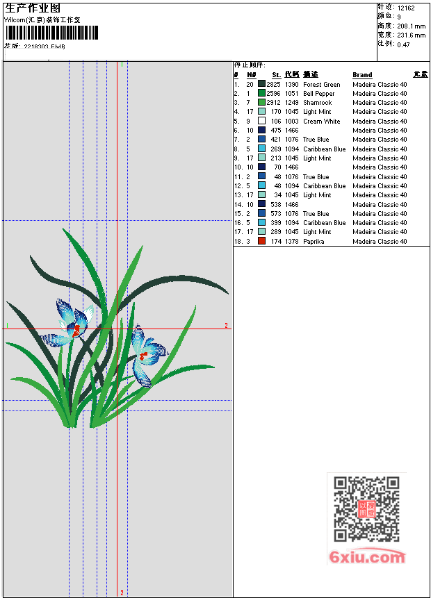 兰花 点此上传花版兑乐绣币/现金 EMB花版参数: 大小:105.00 KB / 尺寸:232*208[毫米] / 针数:12162针 / 线色:9 / 格式:EMB / 版本:e4.2 版带文件需绣花软件方可打开,可配色打印导出各种格式或直接上机绣。如无绣花软件可下载1:1模拟效果图。 PNG图片信息:大小:0.4(MB) /图宽*高:877x788(像素) 上传作者( xxh8*** ) 获得乐绣币:10个 EMB下载 1:1图下载 关闭 相似花型推荐: 兰花 凤凰 蝴蝶 蝴蝶 蝴蝶 熊猫 蝶恋花 靓花 玫瑰花 靓花 现代线条 鱼 漓江山水 背景墙 中式山水背景墙 山水 猫 牡丹花 猫头 边牧头像 狗 上一个花样:龙 下一个花样:兰花