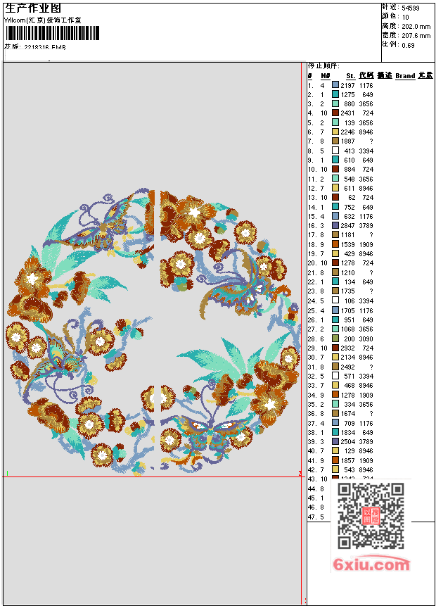 蝴蝶花环圆 点此上传花版兑乐绣币/现金 EMB花版参数: 大小:490.00 KB / 尺寸:208*202[毫米] / 针数:54599针 / 线色:10 / 格式:EMB / 版本:e4.2 版带文件需绣花软件方可打开,可配色打印导出各种格式或直接上机绣。如无绣花软件可下载1:1模拟效果图。 PNG图片信息:大小:0.7(MB) /图宽*高:786x765(像素) 上传作者( magi*** ) 获得乐绣币:50个 EMB下载 1:1图下载 关闭 相似花型推荐: 靓花 醒狮头 龙 兰花 兰花 凤凰 蝴蝶 蝴蝶 蝴蝶 熊猫 蝶恋花 靓花 玫瑰花 靓花 现代线条 鱼 漓江山水 背景墙 中式山水背景墙 山水 上一个花样:远古猛兽 恐龙 下一个花样:靓花