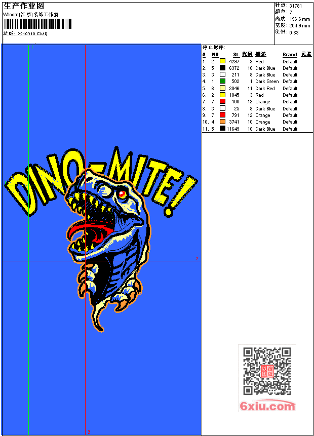 远古猛兽 恐龙 点此上传花版兑乐绣币/现金 EMB花版参数: 大小:260.00 KB / 尺寸:204*196[毫米] / 针数:31781针 / 线色:7 / 格式:EMB / 版本:wilcom e4 版带文件需绣花软件方可打开,可配色打印导出各种格式或直接上机绣。如无绣花软件可下载1:1模拟效果图。 PNG图片信息:大小:0.5(MB) /图宽*高:775x744(像素) 上传作者( 桑尔*** ) 获得乐绣币:30个 EMB下载 1:1图下载 关闭 相似花型推荐: 蝴蝶花环圆 靓花 醒狮头 龙 兰花 兰花 凤凰 蝴蝶 蝴蝶 蝴蝶 熊猫 蝶恋花 靓花 玫瑰花 靓花 现代线条 鱼 漓江山水 背景墙 上一个花样:猫猫线条勾勒 虎 下一个花样:蝴蝶花环圆