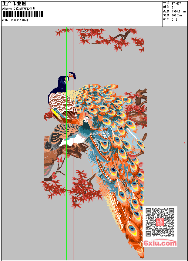 精品孔雀 点此上传花版兑乐绣币/现金 EMB花版参数: 大小:2.61 MB / 尺寸:908*1967[毫米] / 针数:674477针 / 线色:31 / 格式:EMB / 版本:e4.2 版带文件需绣花软件方可打开,可配色打印导出各种格式或直接上机绣。如无绣花软件可下载1:1模拟效果图。 PNG图片信息:大小:26.5(MB) /图宽*高:3436x7440(像素) 上传作者( 平凡*** ) 获得乐绣币:700个 EMB下载 1:1图下载 关闭 相似花型推荐: 中式山水阁楼背景墙 山水背景墙 靓花 牡丹花 旗袍花 靓花 小女孩 可爱猫 猫猫线条勾勒 虎 远古猛兽 恐龙 蝴蝶花环圆 靓花 醒狮头 龙 兰花 兰花 凤凰 上一个花样:新中式山水墙布 下一个花样:中式山水阁楼背景墙