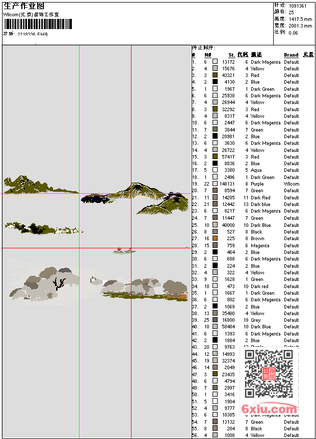 新中式山水墙布 点此上传花版兑乐绣币/现金 EMB花版参数: 大小:8.42 MB / 尺寸:2001*1417[毫米] / 针数:1091361针 / 线色:25 / 格式:EMB / 版本:e4.2 版带文件需绣花软件方可打开,可配色打印导出各种格式或直接上机绣。如无绣花软件可下载1:1模拟效果图。 PNG图片信息:大小:23.6(MB) /图宽*高:7570x5362(像素) 上传作者( 平凡*** ) 获得乐绣币:1000个 EMB下载 1:1图下载 关闭 相似花型推荐: 精品孔雀 中式山水阁楼背景墙 山水背景墙 靓花 牡丹花 旗袍花 靓花 小女孩 可爱猫 猫猫线条勾勒 虎 远古猛兽 恐龙 蝴蝶花环圆 靓花 醒狮头 龙 兰花 兰花 上一个花样:牡丹花墙布 鸟 下一个花样:精品孔雀