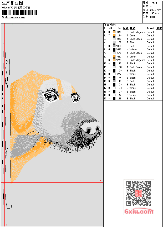 狗头 点此上传花版兑乐绣币/现金 EMB花版参数: 大小:120.50 KB / 尺寸:140*237[毫米] / 针数:12174针 / 线色:8 / 格式:EMB / 版本:e4.2 版带文件需绣花软件方可打开,可配色打印导出各种格式或直接上机绣。如无绣花软件可下载1:1模拟效果图。 PNG图片信息:大小:0.4(MB) /图宽*高:531x895(像素) 上传作者( yang*** ) 获得乐绣币:15个 EMB下载 1:1图下载 关闭 相似花型推荐: 牡丹花墙布 竹 背景墙 新中式花鸟墙布 背景墙 鲤鱼兔 猫头 靓花 樱桃 中式山水墙布 新中式山水墙布 玉兰花墙布 鸟 国画梅兰竹菊墙布 聚财纳福工艺画毛巾绣 精品 佛 弥勒佛 超自然武装当哒当 金刚鹦鹉 鸟 梅花鸟 兔石榴 上一个花样:玉兰花墙布 背景墙 下一个花样:牡丹花墙布 竹 背景墙