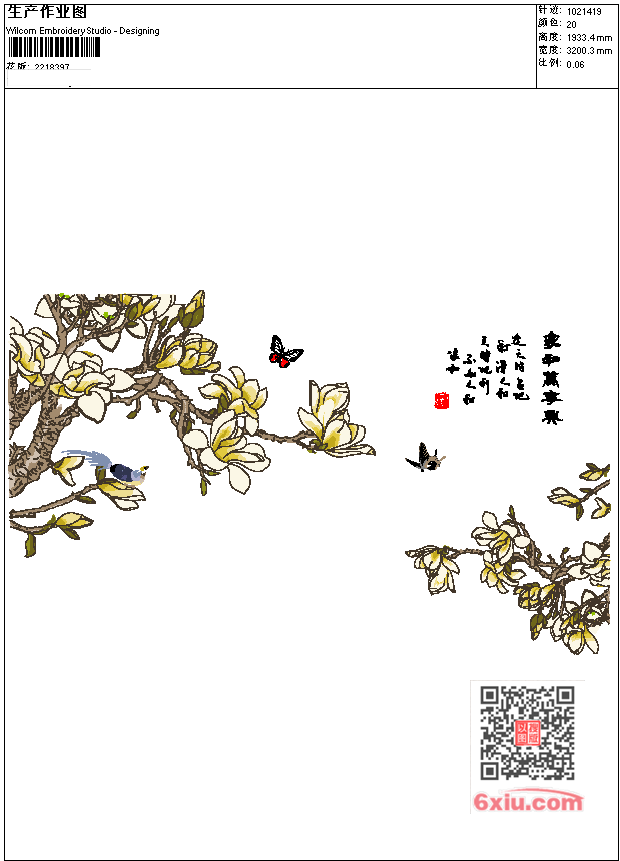精品玉兰花墙布 背景墙 点此上传花版兑乐绣币/现金 EMB花版参数: 大小:3.67 MB / 尺寸:3200*1933[毫米] / 针数:1021558针 / 线色:20 / 格式:EMB / 版本:e4.2 版带文件需绣花软件方可打开,可配色打印导出各种格式或直接上机绣。如无绣花软件可下载1:1模拟效果图。 PNG图片信息:大小:48.8(MB) /图宽*高:12095x7307(像素) 上传作者( 平凡*** ) 获得乐绣币:1000个 EMB下载 1:1图下载 关闭 相似花型推荐: 梅花墙布 背景墙 玉兰花墙布 背景墙 狗头 牡丹花墙布 竹 背景墙 新中式花鸟墙布 背景墙 鲤鱼兔 猫头 靓花 樱桃 中式山水墙布 新中式山水墙布 玉兰花墙布 鸟 国画梅兰竹菊墙布 聚财纳福工艺画毛巾绣 精品 佛 弥勒佛 超自然武装当哒当 上一个花样:现代风格线条墙布 背景墙 下一个花样:梅花墙布 背景墙
