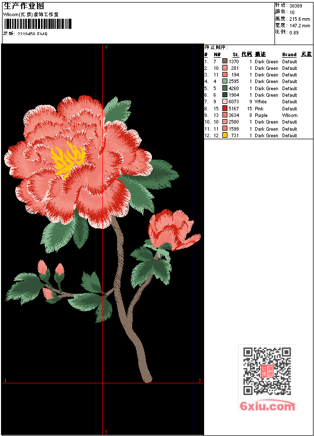 牡丹花 点此上传花版兑乐绣币/现金 EMB花版参数: 大小:237.50 KB / 尺寸:147*216[毫米] / 针数:30389针 / 线色:10 / 格式:EMB / 版本:e4.2 版带文件需绣花软件方可打开,可配色打印导出各种格式或直接上机绣。如无绣花软件可下载1:1模拟效果图。 PNG图片信息:大小:0.5(MB) /图宽*高:557x816(像素) 上传作者( xxh8*** ) 获得乐绣币:30个 EMB下载 1:1图下载 关闭 相似花型推荐: 水仙花 玉兰花 绣球花 蛇宝宝 小鸟 插针 燕子 薰衣草 靓花 靓花 波浪 欧式窗帘 欧式窗帘 沙发布艺 欧式 玫瑰花 沙发布艺 欧式 抽像圆 沙发布艺 欧式 沙发布艺 欧式 上一个花样:熊猫竹 下一个花样:水仙花