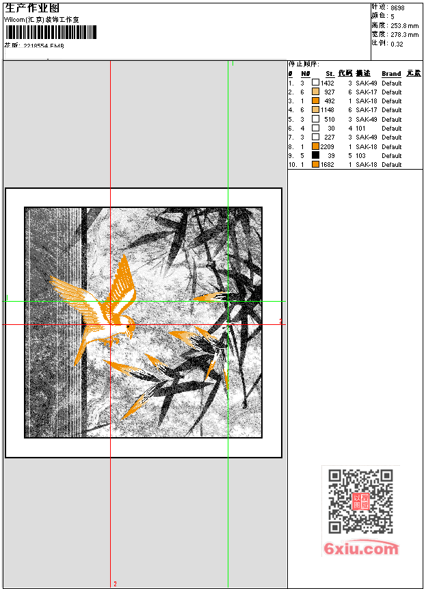 竹林飞鸟 点此上传花版兑乐绣币/现金 EMB花版参数: 大小:1.47 MB / 尺寸:278*254[毫米] / 针数:8698针 / 线色:5 / 格式:EMB / 版本:e4.2 版带文件需绣花软件方可打开,可配色打印导出各种格式或直接上机绣。如无绣花软件可下载1:1模拟效果图。 PNG图片信息:大小:0.3(MB) /图宽*高:1053x961(像素) 上传作者( asdk*** ) 获得乐绣币:10个 EMB下载 1:1图下载 关闭 相似花型推荐: 鹤 兔子 竹芭蕉 菊花 竹 鸟语花香 墙布 老虎头 花蓝 尾巴花 龙 蛇 大侠2 大侠 鸟 牡丹花 上一个花样:海浪 印绣墙布 下一个花样:鹤