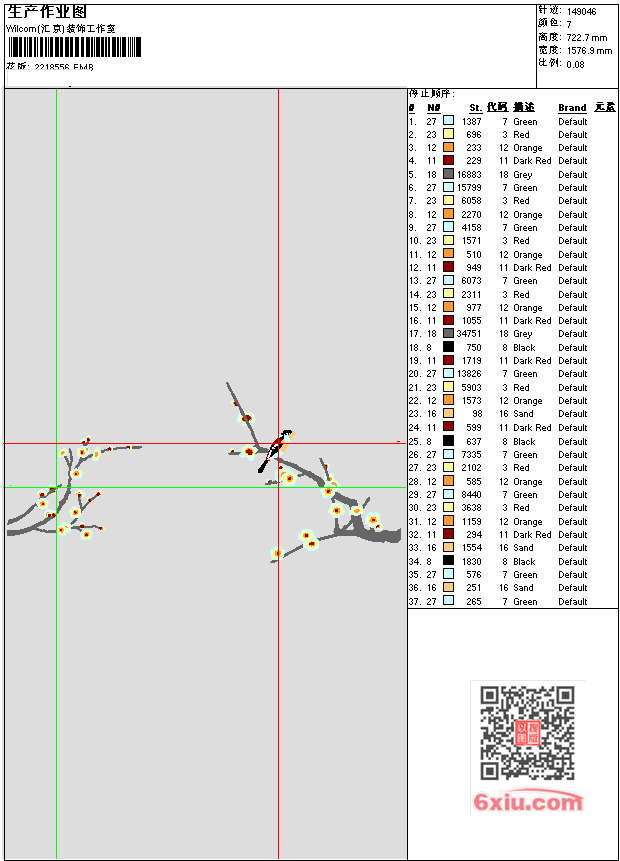 李子花 背景墙 墙布 点此上传花版兑乐绣币/现金 EMB花版参数: 大小:575.00 KB / 尺寸:1577*723[毫米] / 针数:149046针 / 线色:7 / 格式:EMB / 版本:e4.2 版带文件需绣花软件方可打开,可配色打印导出各种格式或直接上机绣。如无绣花软件可下载1:1模拟效果图。 PNG图片信息:大小:3.2(MB) /图宽*高:5965x2734(像素) 上传作者( 友华*** ) 获得乐绣币:150个 EMB下载 1:1图下载 关闭 相似花型推荐: 海浪 印绣墙布 竹林飞鸟 鹤 兔子 竹芭蕉 菊花 竹 鸟语花香 墙布 老虎头 花蓝 尾巴花 龙 蛇 大侠2 大侠 上一个花样:牡丹 下一个花样:海浪 印绣墙布
