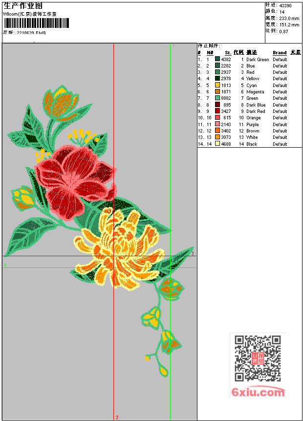 花朵水溶 点此上传花版兑乐绣币/现金 EMB花版参数: 大小:287.00 KB / 尺寸:151*233[毫米] / 针数:43390针 / 线色:14 / 格式:EMB / 版本:e4.2 版带文件需绣花软件方可打开,可配色打印导出各种格式或直接上机绣。如无绣花软件可下载1:1模拟效果图。 PNG图片信息:大小:0.4(MB) /图宽*高:572x882(像素) 上传作者( 9528*** ) 获得乐绣币:20个 EMB下载 1:1图下载 关闭 相似花型推荐: 玫瑰花 卫衣狗头 狗头 桃花三月 精品框画 鸟语花香3 精品挂画 鸟语花香2 精品框画 蝴蝶链目绣 牡丹花 可爱猫咪 草莓 靓花 靓花 靓花 扇子 靓花 背景墙朱雀 上一个花样:高山云境 背景墙 下一个花样:玫瑰花