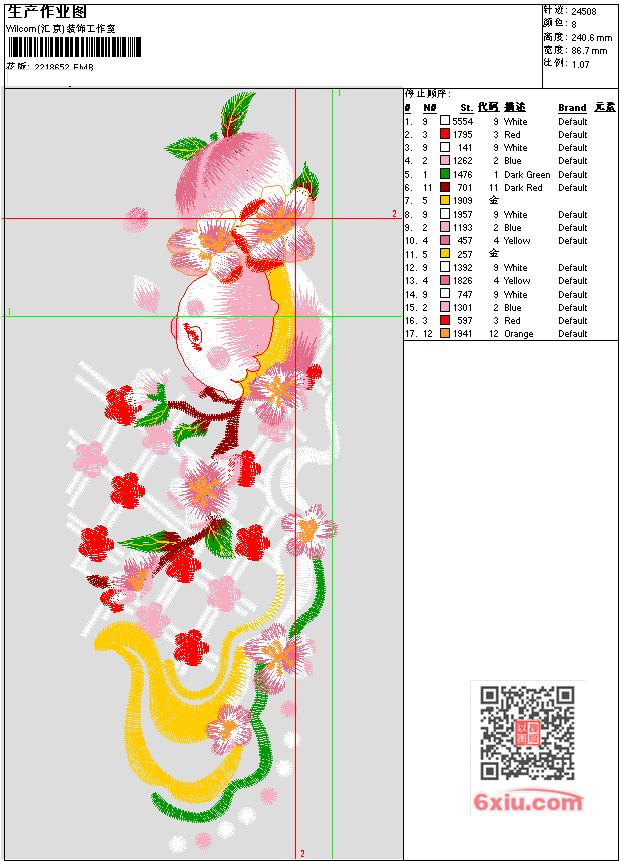 蟠桃 汉服 点此上传花版兑乐绣币/现金 EMB花版参数: 大小:181.00 KB / 尺寸:87*241[毫米] / 针数:24508针 / 线色:8 / 格式:EMB / 版本:e4.2 版带文件需绣花软件方可打开,可配色打印导出各种格式或直接上机绣。如无绣花软件可下载1:1模拟效果图。 PNG图片信息:大小:0.4(MB) /图宽*高:329x911(像素) 上传作者( magi*** ) 获得乐绣币:20个 EMB下载 1:1图下载 关闭 相似花型推荐: 蝴蝶 菊花 高山云境 背景墙 花朵水溶 玫瑰花 卫衣狗头 狗头 桃花三月 精品框画 鸟语花香3 精品挂画 鸟语花香2 精品框画 蝴蝶链目绣 牡丹花 可爱猫咪 草莓 靓花 上一个花样:豹头 下一个花样:蝴蝶