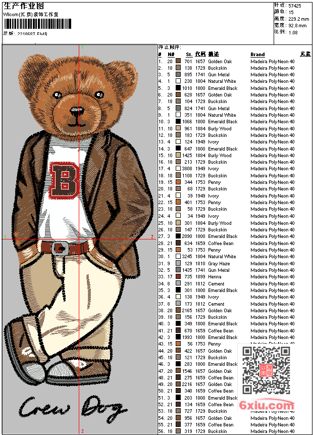 卫衣 熊先生 点此上传花版兑乐绣币/现金 EMB花版参数: 大小:324.00 KB / 尺寸:93*229[毫米] / 针数:57425针 / 线色:15 / 格式:EMB / 版本:e4.2 版带文件需绣花软件方可打开,可配色打印导出各种格式或直接上机绣。如无绣花软件可下载1:1模拟效果图。 PNG图片信息:大小:0.5(MB) /图宽*高:351x867(像素) 上传作者( asdk*** ) 获得乐绣币:60个 EMB下载 1:1图下载 关闭 相似花型推荐: 骷髅 小狗 狗 柴犬 燕子 福 燕子 古代裙花 汉服 豹头 蟠桃 汉服 蝴蝶 菊花 高山云境 背景墙 花朵水溶 玫瑰花 卫衣狗头 狗头 上一个花样:草莓鹿 下一个花样:骷髅
