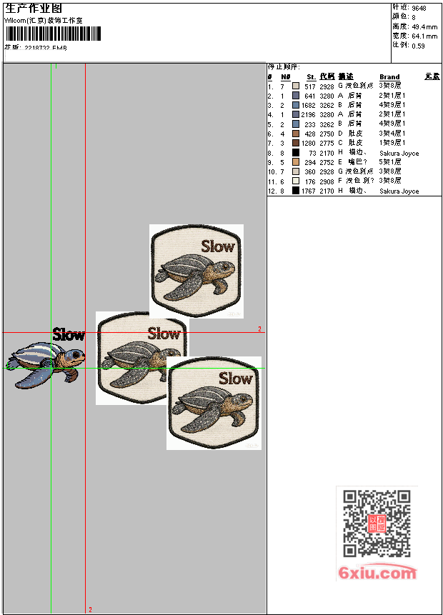 海龟 上传花版得乐绣币/现金 EMB花版参数: 大小:5.08 MB / 尺寸:64*49[毫米] / 针数:9648针 / 线色:8 / 格式:EMB / 版本:e4.2 版带文件需绣花软件方可打开,可配色打印导出各种格式或直接上机绣。如无绣花软件可下载1:1模拟效果图。 模拟图片信息:大小:0.1(MB) /图宽*高:243x187(像素) 上传作者( xint*** ) 获得乐绣币:10个 EMB下载 1:1图下载 收藏本图 关闭 相似花型推荐: 墙布 背景墙 风景山水 燕子 草莓鹿 卫衣 熊先生 骷髅 小狗 狗 柴犬 燕子 福 燕子 古代裙花 汉服 豹头 蟠桃 汉服 蝴蝶 菊花 高山云境 背景墙 上一个花样:鱼 下一个花样:墙布 背景墙 风景山水