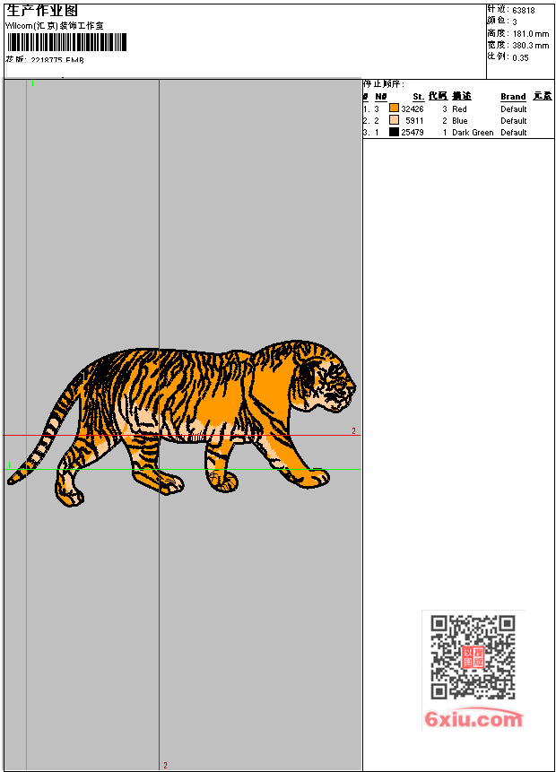 老虎 点此上传花版兑乐绣币/现金 EMB花版参数: 大小:297.00 KB / 尺寸:380*181[毫米] / 针数:63818针 / 线色:3 / 格式:EMB / 版本:e4.2 版带文件需绣花软件方可打开,可配色打印导出各种格式或直接上机绣。如无绣花软件可下载1:1模拟效果图。 PNG图片信息:大小:1.3(MB) /图宽*高:1439x685(像素) 上传作者( LK18*** ) 获得乐绣币:60个 EMB下载 1:1图下载 关闭 相似花型推荐: 鱼 海龟 墙布 背景墙 风景山水 燕子 草莓鹿 卫衣 熊先生 骷髅 小狗 狗 柴犬 燕子 福 燕子 古代裙花 汉服 豹头 蟠桃 汉服 蝴蝶 上一个花样:返回列表 下一个花样:鱼