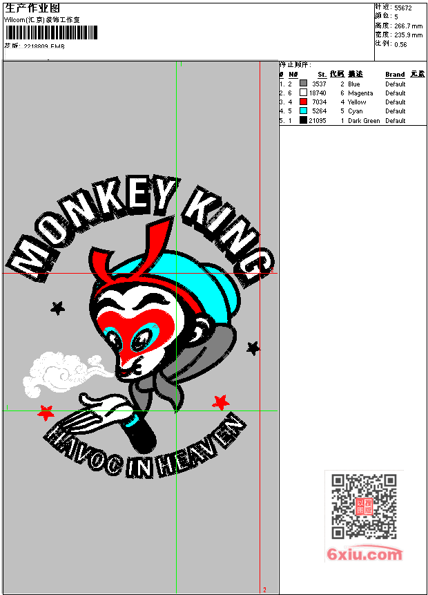 孙悟空 点此上传花版兑乐绣币/现金 EMB花版参数: 大小:247.00 KB / 尺寸:236*267[毫米] / 针数:55672针 / 线色:5 / 格式:EMB / 版本:e4.2 版带文件需绣花软件方可打开,可配色打印导出各种格式或直接上机绣。如无绣花软件可下载1:1模拟效果图。 PNG图片信息:大小:0.9(MB) /图宽*高:893x1009(像素) 上传作者( LK18*** ) 获得乐绣币:50个 EMB下载 1:1图下载 关闭 相似花型推荐: 豹 戏剧人物 花脸龙 圆龙 天鹅 小鸟 公鸡 猫 公鸡 老虎 鱼 海龟 墙布 背景墙 风景山水 燕子 草莓鹿 上一个花样:飞马 下一个花样:豹
