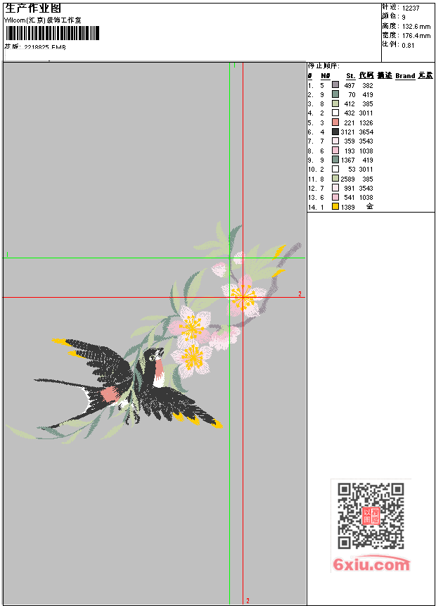 燕子 点此上传花版兑乐绣币/现金 EMB花版参数: 大小:128.50 KB / 尺寸:176*133[毫米] / 针数:12237针 / 线色:9 / 格式:EMB / 版本:e4.2 版带文件需绣花软件方可打开,可配色打印导出各种格式或直接上机绣。如无绣花软件可下载1:1模拟效果图。 PNG图片信息:大小:0.2(MB) /图宽*高:668x502(像素) 上传作者( magi*** ) 获得乐绣币:10个 EMB下载 1:1图下载 关闭 相似花型推荐: 军鱼 蜘蛛 飞马 孙悟空 豹 戏剧人物 花脸龙 圆龙 天鹅 小鸟 公鸡 猫 公鸡 老虎 鱼 上一个花样:返回列表 下一个花样:军鱼