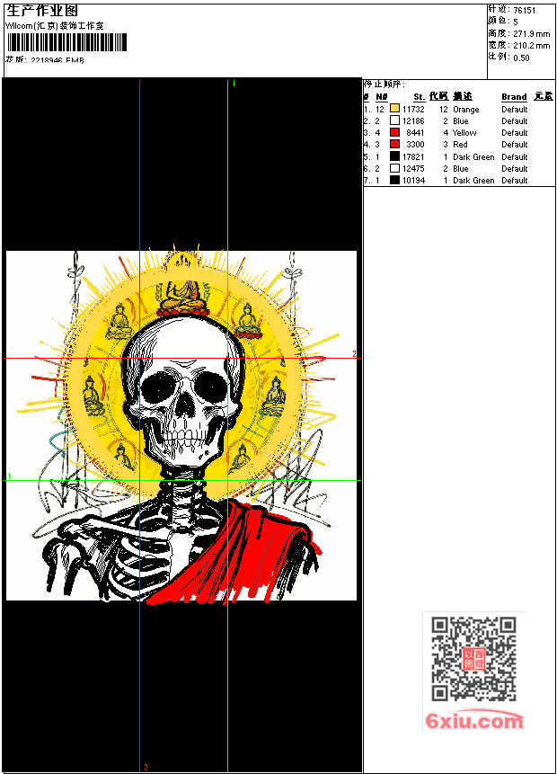 袈裟骷髅 上传花版得乐绣币/现金 EMB花版参数: 大小:879.00 KB / 尺寸:210*272[毫米] / 针数:76151针 / 线色:5 / 格式:EMB / 版本:e4.2 版带文件需绣花软件方可打开,可配色打印导出各种格式或直接上机绣。如无绣花软件可下载1:1模拟效果图。 模拟图片信息:大小:0.2(MB) /图宽*高:796x1029(像素) 上传作者( chen*** ) 获得乐绣币:80个 EMB下载 1:1图下载 收藏本图 关闭 相似花型推荐: 荷花鲤鱼 小鸟 圆 小鸟 猫 草莓兔 玉兔 月亮 蛇 墙布 背景墙 孔雀 墙布 鹿鹿高升 背景墙 墙布 步步高升三联 背景墙 梅花鹿 墙布 金龙鱼 背景墙 墙布 荷花瓶三联 背景墙 墙布 荷花鱼 背景墙 徐悲鸿马 精品 老虎头 上一个花样:返回列表 下一个花样:荷花鲤鱼