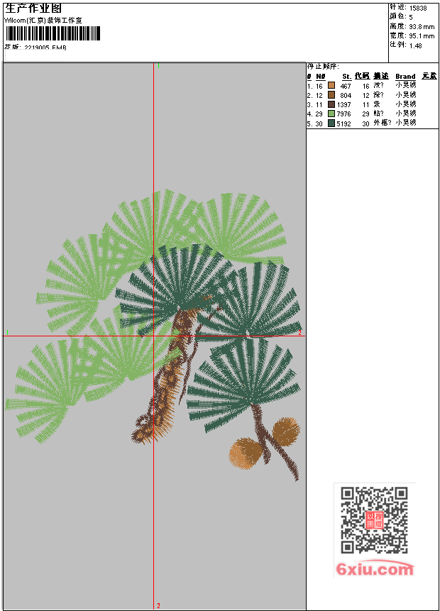 松枝 上传花版得乐绣币/现金 EMB花版参数: 大小:109.50 KB / 尺寸:95*94[毫米] / 针数:15838针 / 线色:5 / 格式:EMB / 版本:e4.2 版带文件需绣花软件方可打开,可配色打印导出各种格式或直接上机绣。如无绣花软件可下载1:1模拟效果图。 模拟图片信息:大小:0.1(MB) /图宽*高:360x355(像素) 上传作者( 1340*** ) 获得乐绣币:15个 EMB下载 1:1图下载 收藏本图 关闭 相似花型推荐: 松枝 前胸鸟 靓花 燕子 靓花 袈裟骷髅 大花 牡丹 彩色马 荷花鲤鱼 小鸟 圆 小鸟 猫 草莓兔 玉兔 月亮 蛇 上一个花样:松枝3-uncheck 下一个花样:松枝