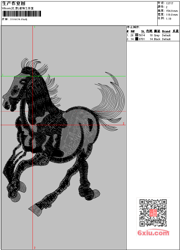 马 上传花版得乐绣币/现金 EMB花版参数: 大小:101.00 KB / 尺寸:119*155[毫米] / 针数:13717针 / 线色:2 / 格式:EMB / 版本:e4.2 版带文件需绣花软件方可打开,可配色打印导出各种格式或直接上机绣。如无绣花软件可下载1:1模拟效果图。 模拟图片信息:大小:0.1(MB) /图宽*高:451x586(像素) 上传作者( 2791*** ) 获得乐绣币:15个 EMB下载 1:1图下载 收藏本图 关闭 相似花型推荐: 福禄墙布 葫芦 背景墙 阁楼墙布 背景墙 千里江山墙布 背景墙 现代城市 背景墙 腾龙 背景墙 猫乱针绣 龙 梅花 鸟 狐狸 汉服 花卉 蝴蝶 桃子 毛巾绣老虎头 升龙 松枝 松枝 松枝 上一个花样:梅花-uncheck 下一个花样:福禄墙布 葫芦 背景墙