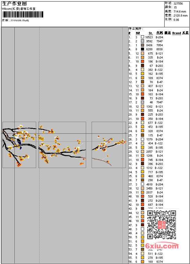 三联画 玉兰花 上传花版得乐绣币/现金 EMB花版参数: 大小:2.54 MB / 尺寸:2121*715[毫米] / 针数:327556针 / 线色:15 / 格式:EMB / 版本:e4.2 版带文件需绣花软件方可打开,可配色打印导出各种格式或直接上机绣。如无绣花软件可下载1:1模拟效果图。 模拟图片信息:大小:1.3(MB) /图宽*高:8015x2982(像素) 上传作者( thor*** ) 获得乐绣币:300个 EMB下载 1:1图下载 收藏本图 关闭 相似花型推荐: 墙布 背景墙 玄关 竹子 龙 龙 龙 龙 少林拳法 公鸡带小鸡 公鸡 珠片 锦绣江山 精品 老虎 猛虎下山 一声虎啸镇百兽 精品 牡丹花 靓花 玫瑰花 马 福禄墙布 葫芦 背景墙 阁楼墙布 背景墙 千里江山墙布 背景墙 上一个花样:三联 叶子三联-uncheck 下一个花样:墙布 背景墙 玄关 竹子