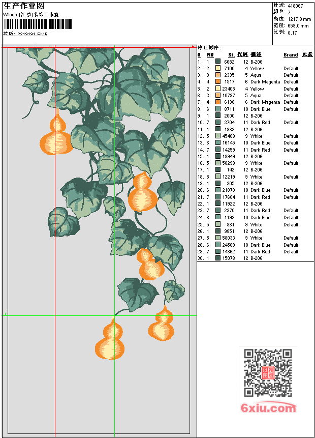 墙布 葫芦 玄关 背景墙 上传花版得乐绣币/现金 EMB花版参数: 大小:1.41 MB / 尺寸:659*1218[毫米] / 针数:418067针 / 线色:7 / 格式:EMB / 版本:e4.2 版带文件需绣花软件方可打开,可配色打印导出各种格式或直接上机绣。如无绣花软件可下载1:1模拟效果图。 模拟图片信息:大小:2.2(MB) /图宽*高:2687x5707(像素) 上传作者( thor*** ) 获得乐绣币:400个 EMB下载 1:1图下载 收藏本图 关闭 相似花型推荐: 三联 叶子三联 背景墙 三联画 玉兰花 墙布 背景墙 玄关 竹子 龙 龙 龙 龙 少林拳法 公鸡带小鸡 公鸡 珠片 锦绣江山 精品 老虎 猛虎下山 一声虎啸镇百兽 精品 牡丹花 靓花 玫瑰花 马 福禄墙布 葫芦 背景墙 上一个花样:墙布 三联 太阳花-uncheck 下一个花样:三联 叶子三联 背景墙