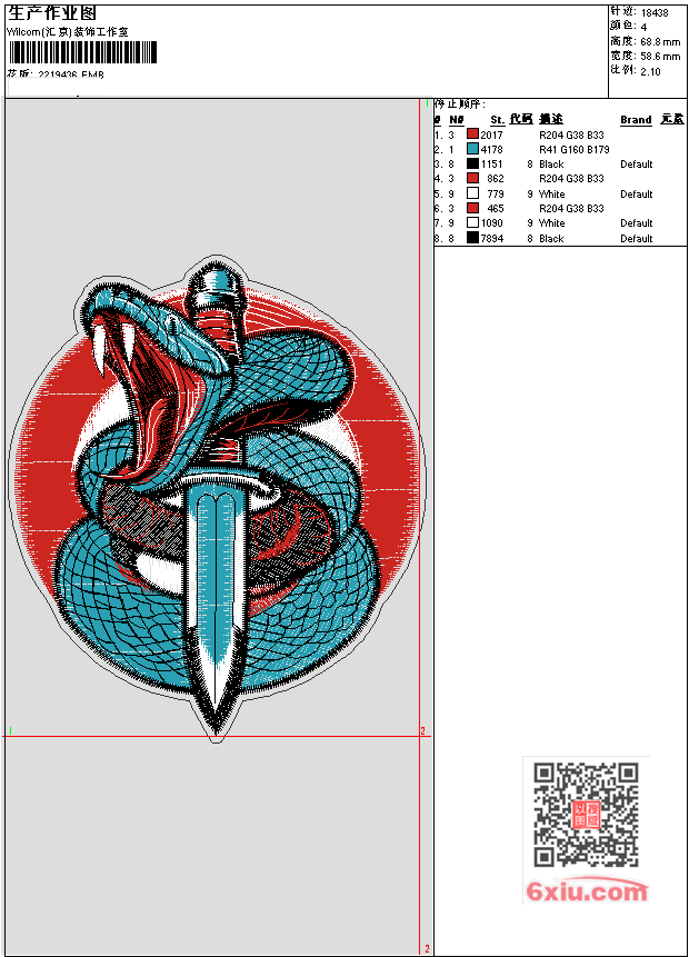 蛇- 刀 上传花版得乐绣币/现金 EMB花版参数: 大小:155.50 KB / 尺寸:59*69[毫米] / 针数:18438针 / 线色:4 / 格式:EMB / 版本:e4.2 版带文件需绣花软件方可打开,可配色打印导出各种格式或直接上机绣。如无绣花软件可下载1:1模拟效果图。 模拟图片信息:大小:0.1(MB) /图宽*高:222x261(像素) 上传作者( 1340*** ) 获得乐绣币:20个 EMB下载 1:1图下载 收藏本图 关闭 相似花型推荐: 猫咪 牡丹花开富贵背景墙 繁华芳菲背景墙 山水背景墙 熊 猫头鹰 山水江山如画 背景墙 墙布 背景墙芭蕉叶- 背景墙 墙布三联金龙鱼 背景墙 墙布 三联 鱼 背景墙 锦鲤 三联小提琴 墙布 背景墙 墙布玄关 银杏叶 背景墙 墙布 三联 太阳花 背景墙 墙布 葫芦 玄关 背景墙 三联 叶子三联 背景墙 上一个花样:0118 龙头-uncheck 下一个花样:猫咪