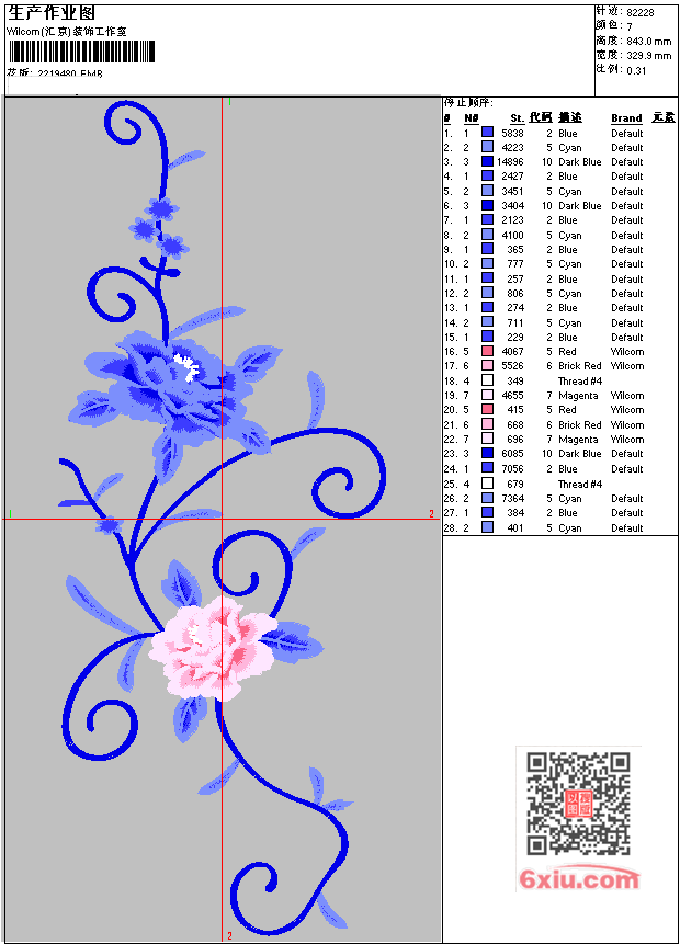 - EMB花版参数: 大小:512.50 KB / 尺寸:330*843[毫米] / 针数:82228针 / 线色:7 / 格式:EMB / 版本:e4.2