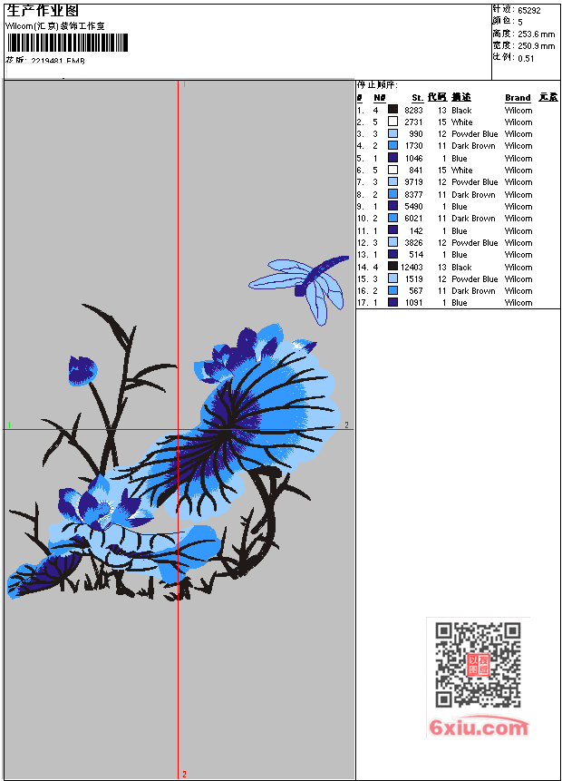 - EMB花版参数: 大小:342.00 KB / 尺寸:251*254[毫米] / 针数:65292针 / 线色:5 / 格式:EMB / 版本:e4.2