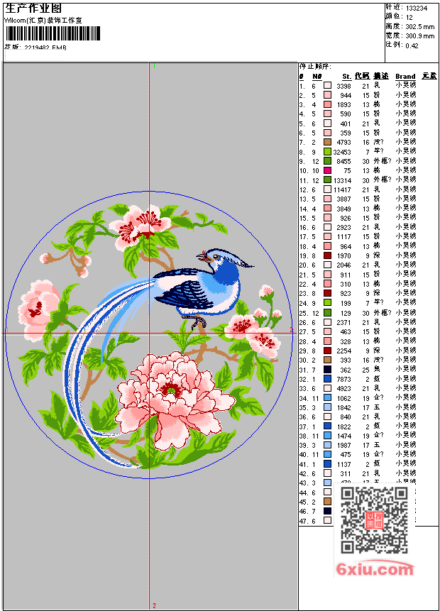- EMB花版参数: 大小:720.50 KB / 尺寸:301*303[毫米] / 针数:133234针 / 线色:12 / 格式:EMB / 版本:e4.2