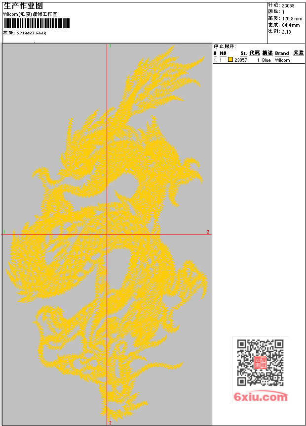 - EMB花版参数: 大小:287.00 KB / 尺寸:64*121[毫米] / 针数:23059针 / 线色:1 / 格式:EMB / 版本:e4.2